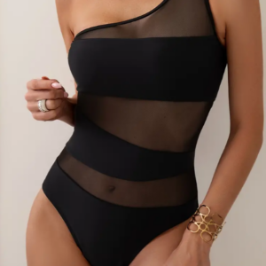 One-piece Swimsuit Mesh Contrast Cut Out One Shoulder