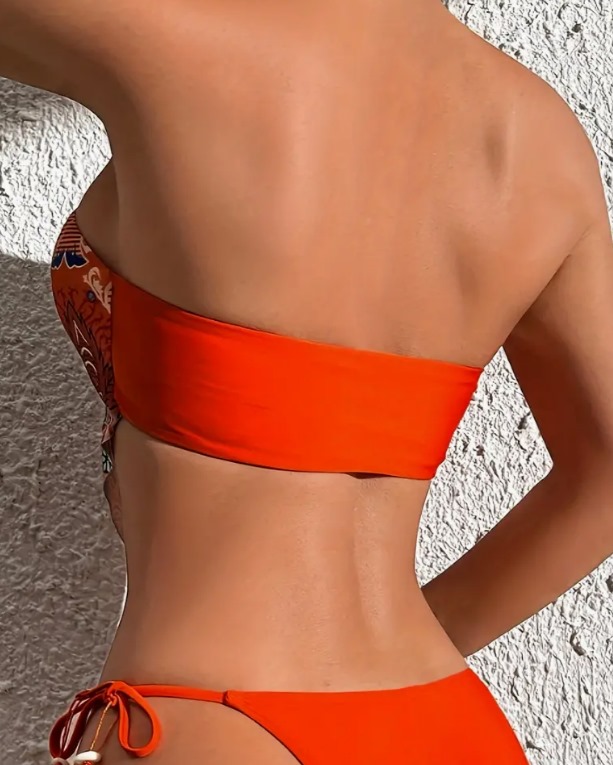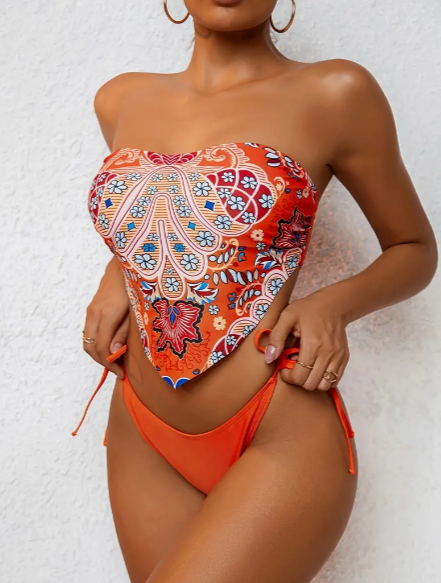 Boho Floral Print Bandeau Bikini Swimsuit