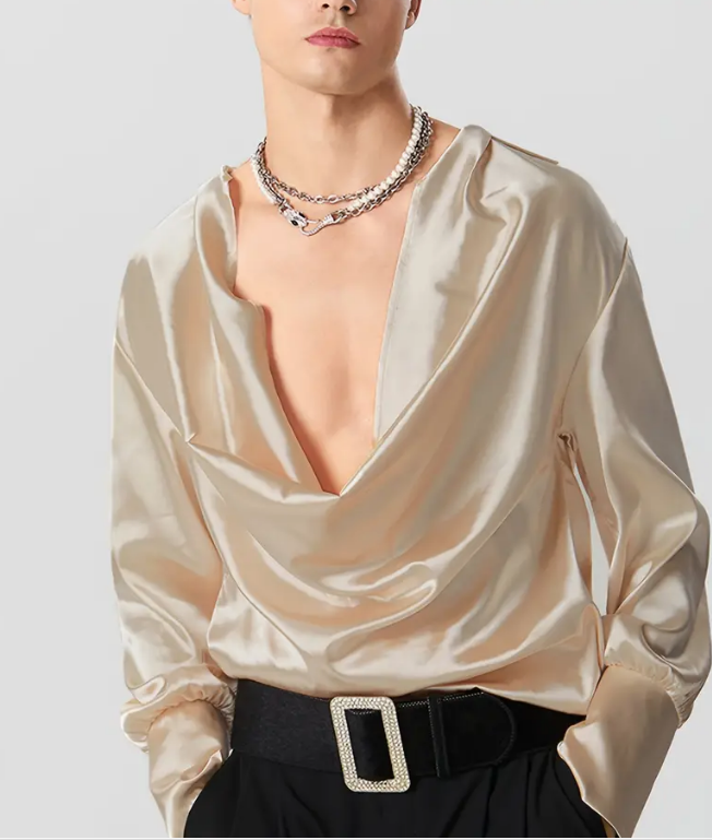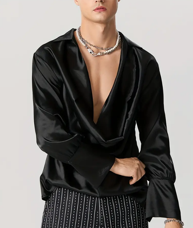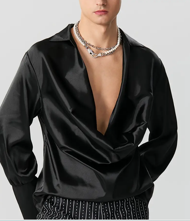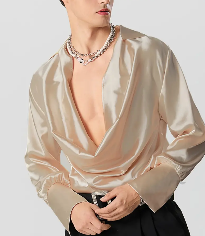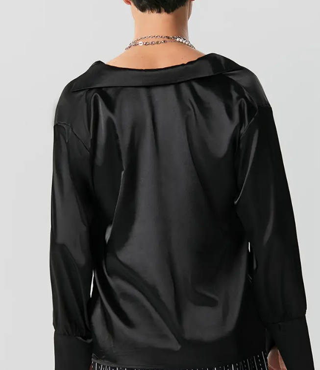 Shirt Top Deep V Neck Long Sleeve