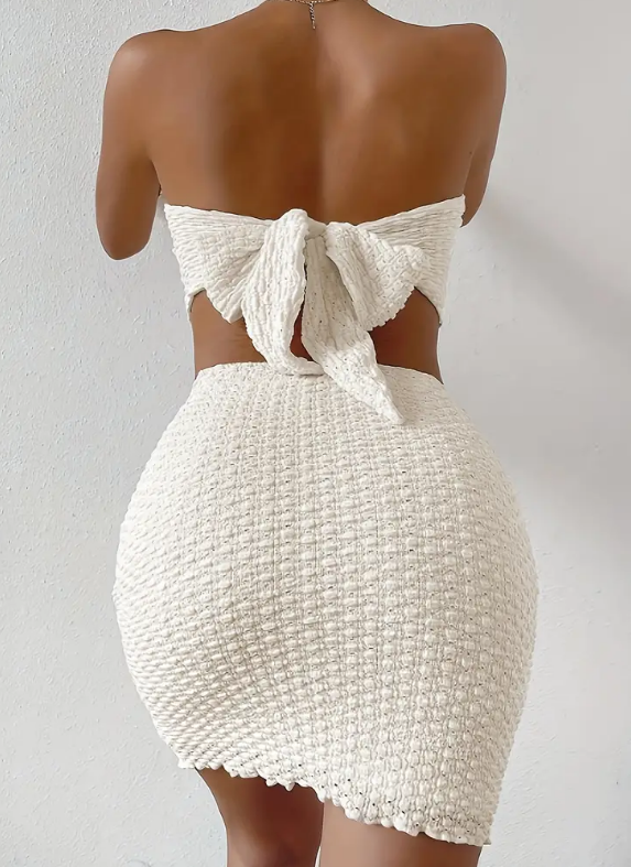 Tie Back Bandana Hem Crop Tube Top & Skirt